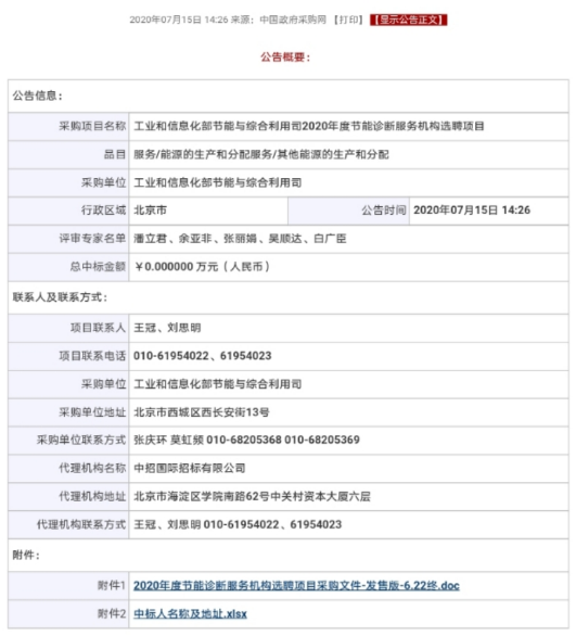 7月15日,瑞澤能源在工信部節能與綜合利用司2020年度節能診斷服務(wù)機構選聘項目中成功中標。
