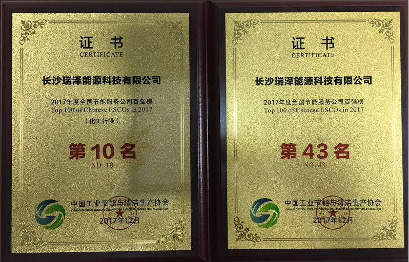 近日,“2017年度全國節能服務(wù)公司百強榜”名單出爐,瑞澤能源再次入選,并被評入選“全國節能服務(wù)公司化工行業(yè)前10名”。